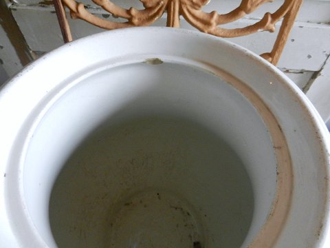 Meget sjælden stor cremefarvet fajance boudoirspand fra Aluminia.