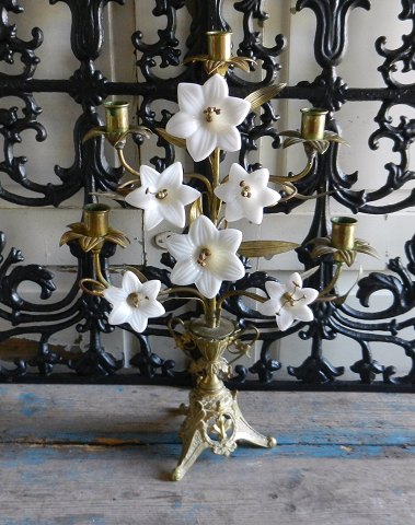 Den smukkeste franske kirkestage med seks opalineblomster. Stagen er af meget høj kvalitet, lyspiberne er til forskel fra andre kirkestager ideel til kronelys.