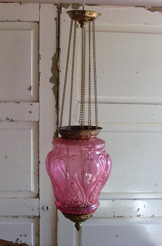 Smuk ampel i hindbærfarvet glas.