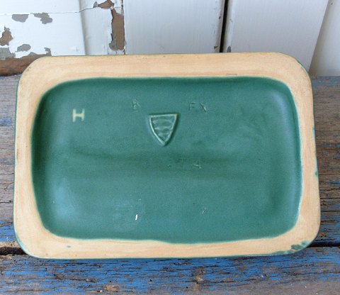 Michael Andersen askebæger med panter i flot grøn glasur.