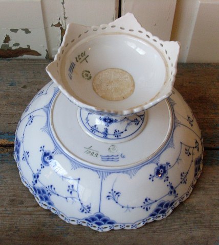 Royal Copenhagen Musselmalet helblonde stor salatskål på høj fod No. 1022, 2. sort. Højde 18cm. Diameter 27cm.