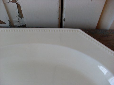 Smukt Fransk sekskantet fajance fad med perlekant. Fremstår med en lille hår revne, se billed. Mål 29x37cm.