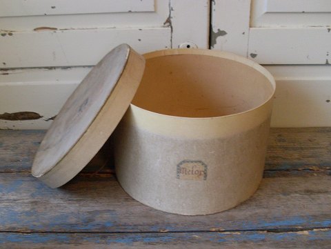 Skøn gammel hatteæske fra Paris. Æsken er fra Bruyére - Couture & modes, Paris. Højde 20cm. Diameter 30cm.