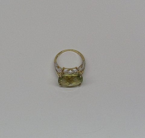 10kt. guld ring prydet med stor grøn ametyst på 9,29ct.
