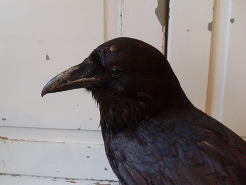 Flot udstoppet ravn.