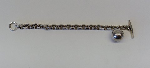Kraftig armlænke med charm i form af stor kugle. Stemplet HS 830s, Hermann Siersbøl. Længde 20cm. Diameter på charm 2cm.