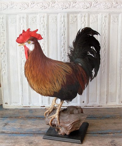 Udstoppet hane af racen brun italiener