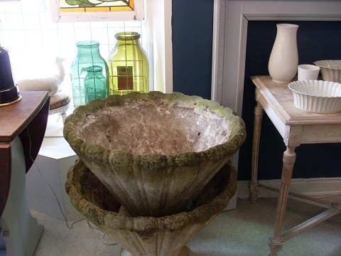 Store smukke sandstens krukker, med den fineste patina.