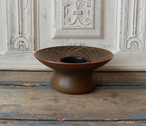 Gerd Bøgelund for Royal Copenhagen stentøjs stage til bloklys med mønster i relief. No. 21426, 1. sort. Højde 8,5cm. Diameter 19cm.