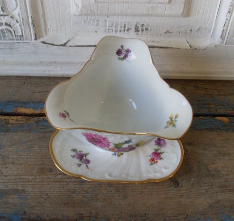 Royal Copenhagen Saxon flower triangular sauce bowl Factory first Height 12 cm. Diameter 17 cm. Produced between 1850-1898