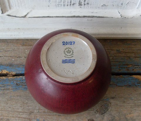 Bode Willumsen for Royal Copenhagen stentøjs krukke i organisk form med okseblodsglasur No. 20127, 1. sort Højde 12,5 cm. Diameter 14 cm.