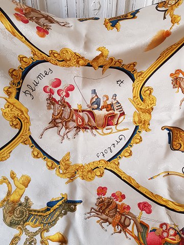 Hermès silketørklæde med “Plumes et Grelots” motiv af J. Abadie.