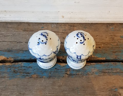 Royal Copenhagen Musselmalet riflet sæt salt & peber bøsser No. 467-480, 1. sort. Originale propper medfølger. Højde 8,5 cm.
