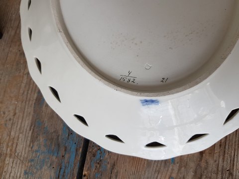 Royal Copenhagen Fuld Saksiskblomst fad med gennembrudt kant no. 1582