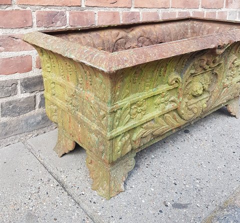 Meget stor fransk havekumme i støbejern fremstår i fantastisk grøn farve. Der er dræn huller i bunden.