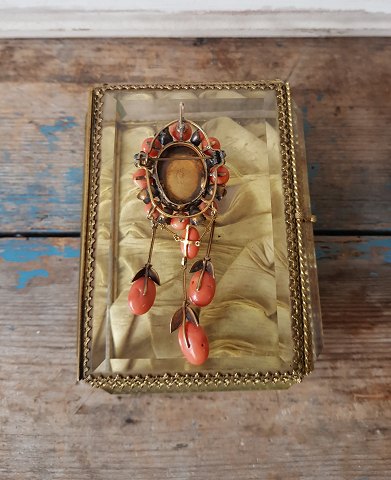 Meget smuk Victoriansk broche i 8 kt med store koral perler.