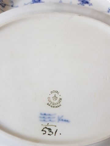 Royal Copenhagen Blue Fluted half-lace dish No. 531 Dimensions 19.5 x 25.5 cm. Factory first - DKK 800.- Stock: Factory second - DKK 750.- Stock: