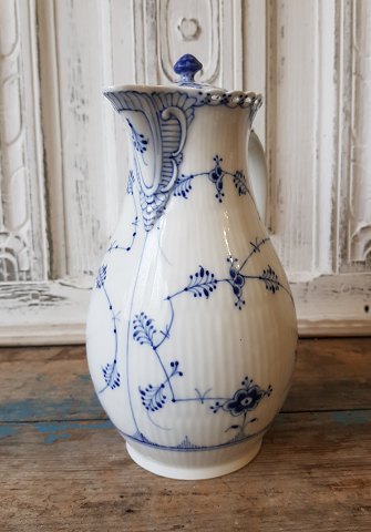 Royal Copenhagen Blue Fluted whole lace rare chocolate jug holds 1L. No. 1026, Factory first. Height 24 cm. Produced between 1898-1923