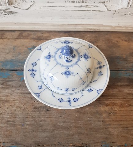 Royal Copenhagen Blue Fluted fluted plain butter pot / butter dish with solid saucer. No. 4, Factory second Height 9cm. Diameter 17cm.