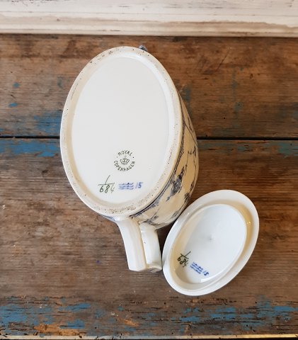 Royal Copenhagen Blue Fluted half-lace rare oval teapot No. 684, Factory firts. Height 13 cm. Length 22.5 cm. Produced between 1898-1923