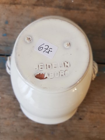 Cremefarvede keramikskål på fod med hanke. Stemplet: Seidelin - Faaborg Mål 12 x 16 cm. Højde 9,5 cm. Lager: 2