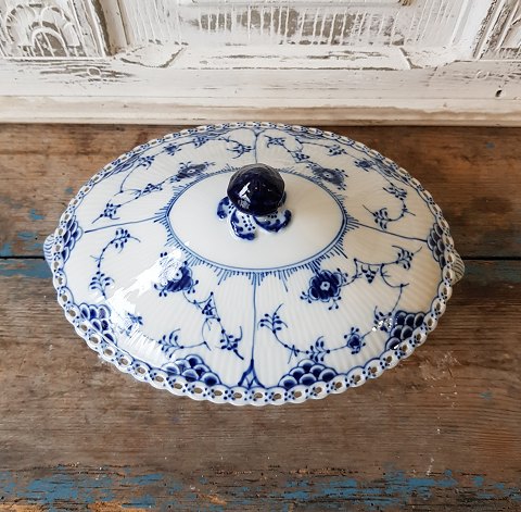Royal Copenhagen Musselmalet helblonde lågfad No. 1129, Låg 1. sortering, underdel 2. sortering. Mål 17,5 x 27 cm. Højde 15 cm.