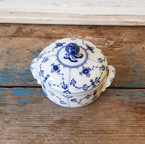 Royal Copenhagen Musselmalet riflet smørskål No. 398, 1. sort. Højde 7 cm. Diameter 8,5 cm. Produceret mellem 1898-1923