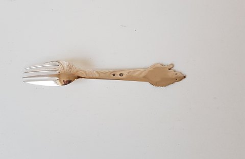H.C. Andersen eventyr gaffel i sølv - motiv "Prinsessen på ærten" Stemplet de tre tårne Længde 15 cm.