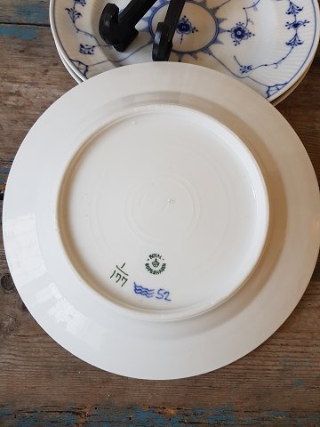 Royal Copenhagen Musselmalet riflet tallerken No. 177, 2. sort. Diameter 22,5 cm. Fremstår alle med brændings fejl Lager: