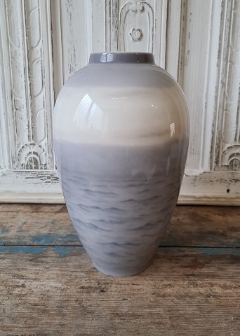 Royal Copenhagen Art Nouveau vase dekoreret med sejlskibe No. 2055/1099, 1. sort. Produceret mellem 1898-1923 Højde 25,5 cm.