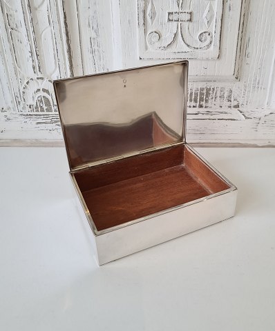 Smuk cigaret box i sølv, invendigt beklædt med træ. Stemplet de tre tårne Mål 9,5 x 13,5 cm. Højde 4 cm.