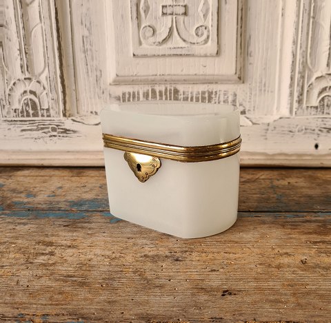 1800 tals kandisskrin i hvid opaline glas med messingmontering.