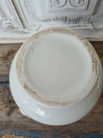 Skøn gammel fajance kande med slangehank fra Aluminia. Højde 23 cm. Stemplet SA Aluminia, Produceret mellem 1864-1921