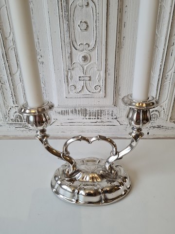 Two-armed candlestick of silver, produced in 1929 by Hugo Grün Stamped the three towers 1929 - 830s - H.Gr With light traces of use. Height 17 cm Length 21.5 cm.