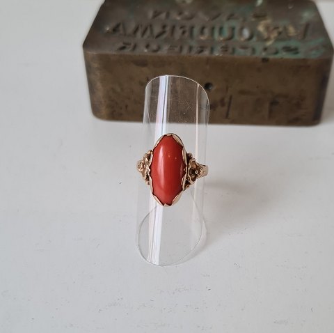 Skønvirke ring i 14 kt guld med koral