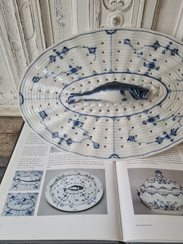 Royal Copenhagen Musselmalet riflet antik sjælden fiskerist med torsk som håndtag. Produceret i 1800tallets første halvdel.
