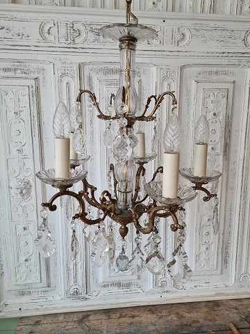 Meget smuk 5-armet lysekrone behængt med talrige store prismer