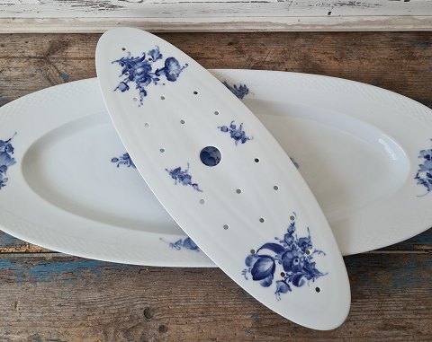 Royal Copenhagen Blå Blomst Flettet fiskefad med rist No. 8022/8243, 1. sortering Mål 60,5 x 25 cm.