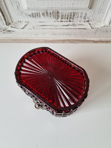 Candy box in ruby red pressed glass