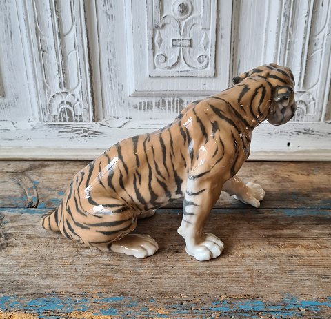B&G figure - snarling tiger No. 1712, Factory first Height 18 cm. Length 30 cm. Design: Lauritz Jensen