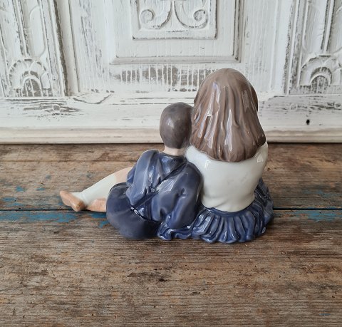 Royal Copenhagen figure - two reading children No. 4670, Factory second Height 14 cm. Length 20 cm. Design: John Galster