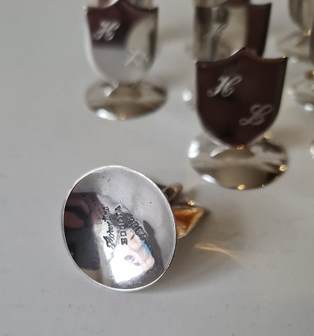 Sæt på 12 stk bordkortholdere i sølv - Colombia - Florentina Bogota Stemplet: Florentina - Bogota - 800 Fremstår med monogram. Højde 2,5 cm.