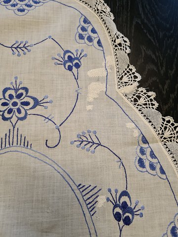 Table runs embroidered with blue fluted pattern Measures 44 x 78 cm.