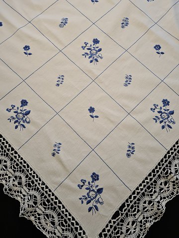 Broderet dug med Blå Blomst mønster 137 x 137 cm.
