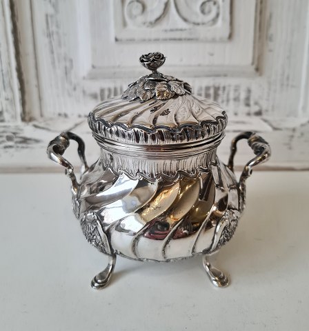 Beautiful sugar bowl in rococo inspired design with rose as lid.