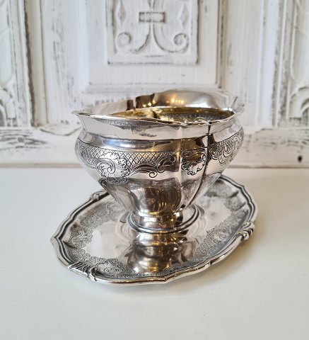 Svend Toxværd sauce jug in silver. Rococo inspired design, gilded inside, delicious strong quality.