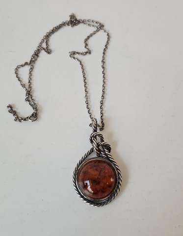 Hermann Siersbøl vintage halskæde i sølv med stort vedhæng med rav.