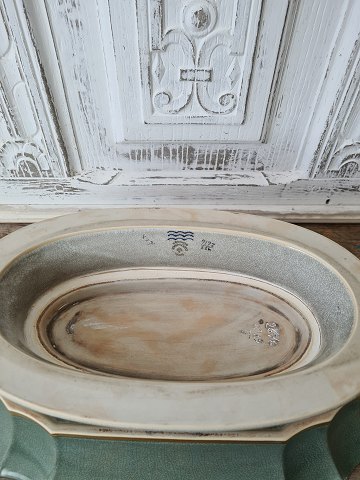 Royal Copenhagen green Craqueleé jardiniere on foot with gold edge. No. 457/2616, Factory first Measure 21 x 42.5 cm. Height 13 cm.