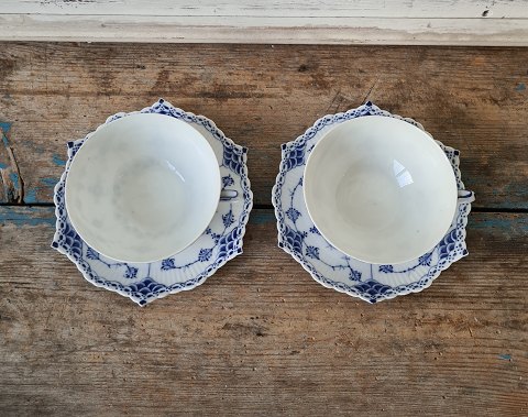 Royal Copenhagen Blue Fluted full lace teacup No. 1130 Measures on the cup itself: Height 5 cm. Diameter 10 cm. Measures on the saucer: 15 cm. Produced between 1898-1923