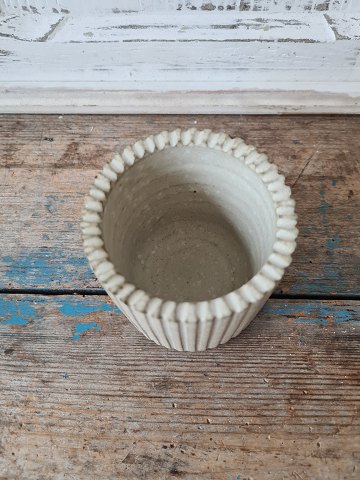 Arne Bang riflet vase i sandfarvet glasur